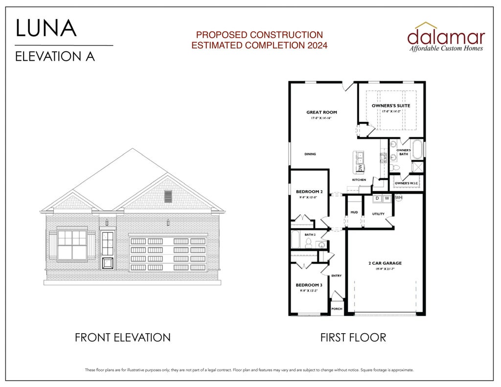 Proposed Construction. Dalamar Homes proudly presents the Luna A floor plan. The Luna A is a ranch style Villa, consisting of 3 bedrooms, 2 bathrooms and a 2 car garage, great room, kitchen, utility room and a mud room. All Dalamar Homes have 10 ft ceilings on the first floor, 8 ft ceilings on the second floor and beautifully hand crafted arch doorways, bull nose rounded wall edges throughout. Personalize this custom build townhome from the ground up! Customize your home with many options in granite countertops, flooring, fixtures, coffered ceilings and so much more!