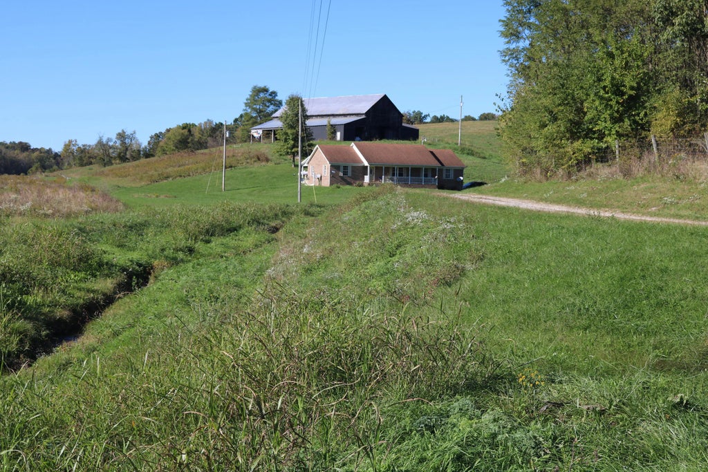 Discover the ultimate rural escape on this 225 +/- acre Kentucky farm, featuring a custom built 6 bedroom, 4 bath brick ranch home with modern comforts and endless possibilities. Built in 2006, this home offers a spacious layout, including a finished walkout basement. Enjoy cozy evenings by the rock fireplace and whip up meals in the roomy kitchen. The main level includes 3 bedrooms (one of which is a primary) and a convenient washer/dryer hookup, with an additional 3 bedrooms (one of which is another primary) and washer/dryer hookup in the basement, perfect for guests or extended family. Geothermal heat and air keep the home energy efficient year round. The property boasts two tobacco barns (8 bent and 5 bent), a 30 x 40 shop with concrete floor, and a massive 120 x 30 hoop barn, ideal for hay storage or any other storage needs. Currently serving as a hunting retreat, this land is also perfect for livestock or crops. Weather you're looking to farm, hunt, or simply relax in the beauty of Kentucky's countryside, this property offers the space, infrastructure, and charm to make your rural dreams a reality. Property is currently under contract with a 72 hr. kick out clause.