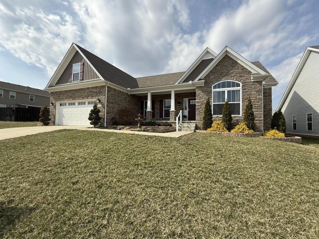 Why wait for a new home to be finished? Discover this 5 year young stunning 4-bedroom, 3-bath ranch home in the highly sought-after Magnolia Pointe community. A welcoming foyer leads into a spacious living room with a cozy fireplace, with engineered hardwood floors seamlessly flowing into the formal dining area. The open-concept kitchen is a chef's dream, featuring stainless steel appliances, a stylish long gray island perfect for entertaining, and elegant finishes throughout. The luxurious primary ensuite boasts a spa-like bath with a walk-in tiled shower, soaking tub, double vanity, and a generous walk-in closet. Two additional large bedrooms complete the main level. Upstairs, a private 4th bedroom with a full bath offers versatility for guests or a home office/game room. Enjoy outdoor living; oversized patio, deck area great for grilling/entertaining all in the fenced backyard, just steps from scenic walking trails, a dog park, and community green spaces. Meticulous and well kept, this home shows new. Prime location provides easy access to shopping, dining, and major conveniences, Like EKU, Baptist Health, I75 and more! Sellers to reassure new buyers with a 1 year warranty.