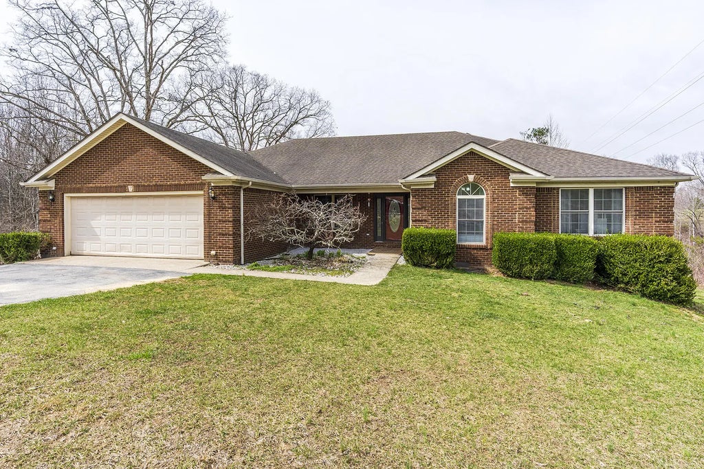 Discover this inviting 3-bedroom, 3-bathroom brick ranch, perfectly situated on 4 acres of peaceful countryside. This home offers a partial basement for extra storage or potential living space. The spacious living room seamlessly flows into the kitchen and dining area, creating an open and airy feel—ideal for entertaining. Enjoy the warmth of hardwood flooring throughout the main living spaces, while the bedrooms offer cozy carpet for added comfort. A large garage provides ample room for vehicles, tools, and hobbies. Added bonus of the house is that it has CAT6 hardwired for the home office and gaming, using 100 percent fiber optic internet with 1 GB speed. Newly built deck is spacious, and overlooks the private backyard. Home Warranty provided.