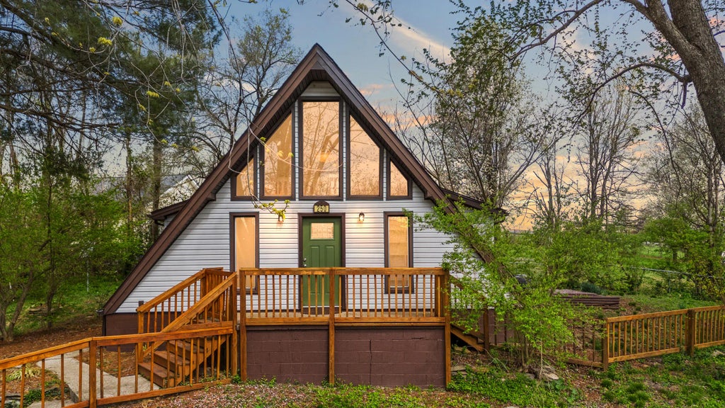 This ADORABLE 3 bedroom, A-Frame home sits on .5 acres in the Paint Lick community and is just minutes from Richmond! It is welcoming from the moment you walk in the front door with an abundance of natural light and built-in bookshelves in the great room. The spacious eat-in kitchen boasts granite countertops and stainless steel appliances. The Primary bedroom and bathroom is on the main level along with another guest bedroom. There are LVP floors throughout, ceramic tile in the bathroom, and an additional bedroom or flex room upstairs that adds to this home's charm. The fenced-in backyard is perfect for animals or young children. Schedule your appointment to see this move-in ready home today!
