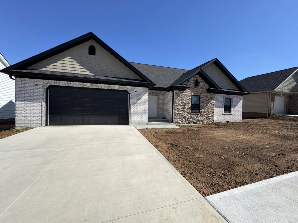 New Build... This home is ready now for you to pick your own finishes. 1800 +/- sq. ft. 3 bedroom / 2 bath home in Bourbon Oaks. Open floor plan with vaulted ceilings. The fireplace in the living room adds a cozy touch! Very spacious house with large primary bedroom, plenty of walk in closet space! 2 car garage. If you are looking for a brand new home to put your own touches on this is the one with the upgraded touches already including double hung Low-E argon windows, insulated vinyl siding. EV charger ready in the garage with insulated garage doors.