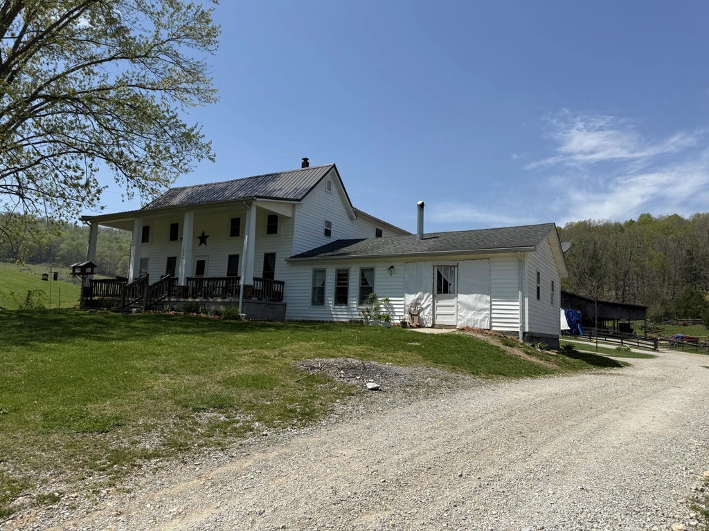 Due to no fault of its own, this property is back on the market. Really nice cattle farm with approximately 70 acres of pasture, 45 acres of woods, for a surveyed total of 115.49. Property has an excellent spring, with holding tanks that holds 1000 gallons. This water source is currently providing water for 3 houses and 4 cattle waterers around the property. Property also has about 45 acres of timber that has not been cut for several years. House is designed for a large family. Hugh open kitchen, living room and bedroom, full bath on main floor. Upstairs has been remodeled for 6 bedrooms and 1/2 bath. Small basement with inside and outside entrances. Farm has a new built workshop 40'x50', half bath & front porch. The property has 2 larger barns, main barn has capacity for around 5,000 square hay bales. Barn with 10 stables for horses or cattle. One section set up for working cattle. Farm has numerous sheds & storage areas. One pond, most water generated by spring. Public water is available. Original section of house has electricity, barn is also wired. This farm would make a great place for any type of livestock. Currently has cattle,horses, sheep, and chickens. High tensile and woven wire fencing throughout the farm
