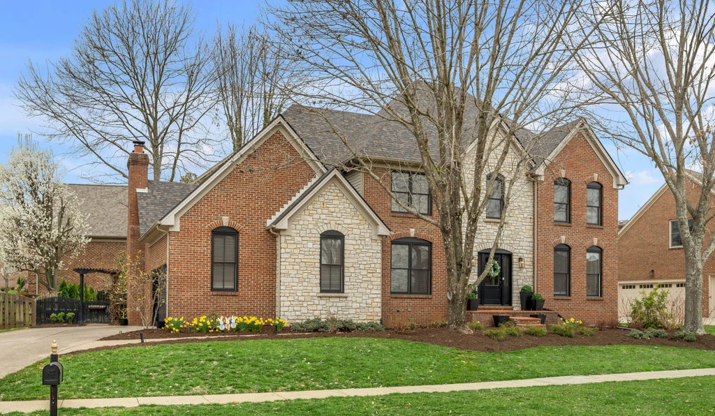 Welcome to Olde Bridge Estates! You'll love this stylishly decorated and well maintained home offering multiple spaces for living and entertaining. The first floor features hardwood floors, a private home office, family room with vaulted ceiling and floor-to-ceiling stone fireplace, an eat-in kitchen with white cabinetry and marble countertops, formal dining room, den and half bath. The second floor offers a spacious primary suite with great walk-in closet, 2 additional bedrooms, full bath and laundry room. The third level is currently used as a 2nd home office but was designed as a bedroom, complete with full bath. The finished basement has a large rec room with fireplace, work-out room, full bath and a children's playroom. Additional features include a side-entry 2 car garage, fenced backyard and patio, perfect for outdoor dining this summer! Located in the popular 40513 area, just past Man-o-War, this gated subdivision enjoys all of the amenities of the Palomar HOA and is a short distance to local restaurants, shopping and schools!