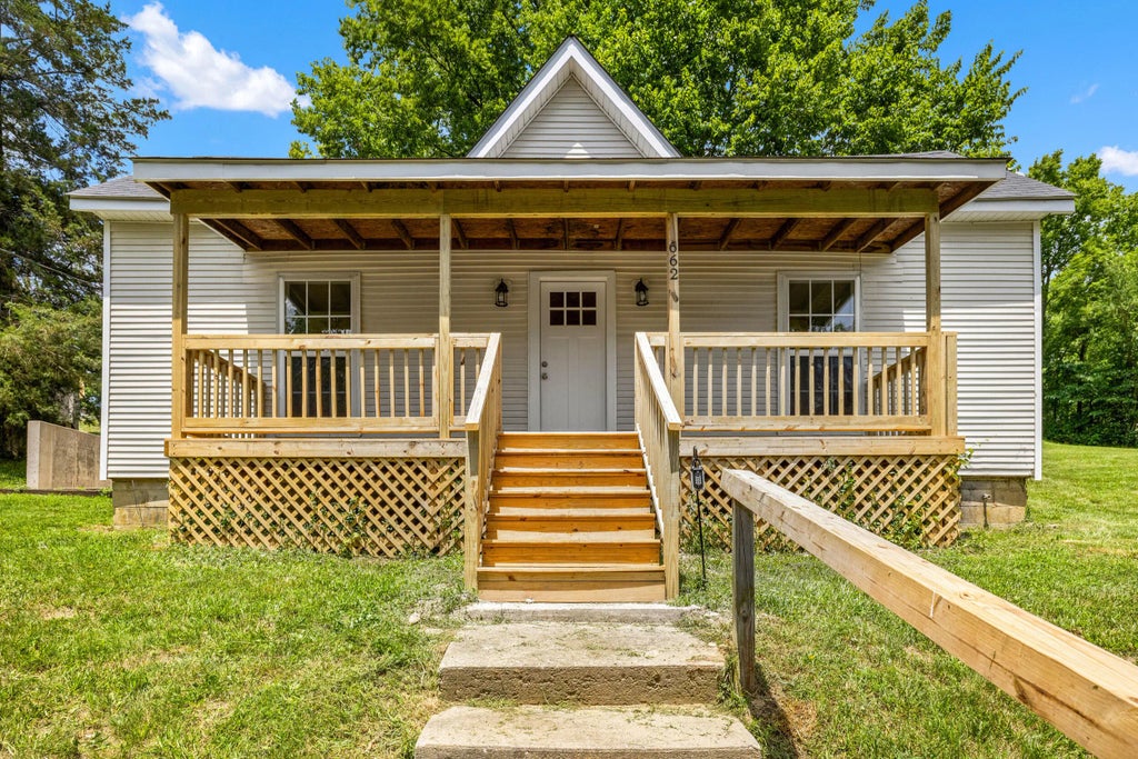 This charming home in Downtown Sadieville is newly updated with fresh paint and flooring throughout. You will love the brand-new front porch -- it's perfect for enjoying a cup of coffee. Step inside and check out the wonderful floor plan. Generously-sized living room boasts ample space for relaxing or enjoying company. Kitchen has lots of counter and cabinet space, a new sink, and a new range hood, along with room for a dining table. Bathroom has been renovated with a new vanity, lights, mirror, and toilet. Both bedrooms are nicely-sized with good closet space. Step outside onto the back patio and you will find a 2-story storage area that's handy for keeping your mower and other outdoor items out of the weather. House sits on a large lot. Don't miss your chance to see this one for yourself!