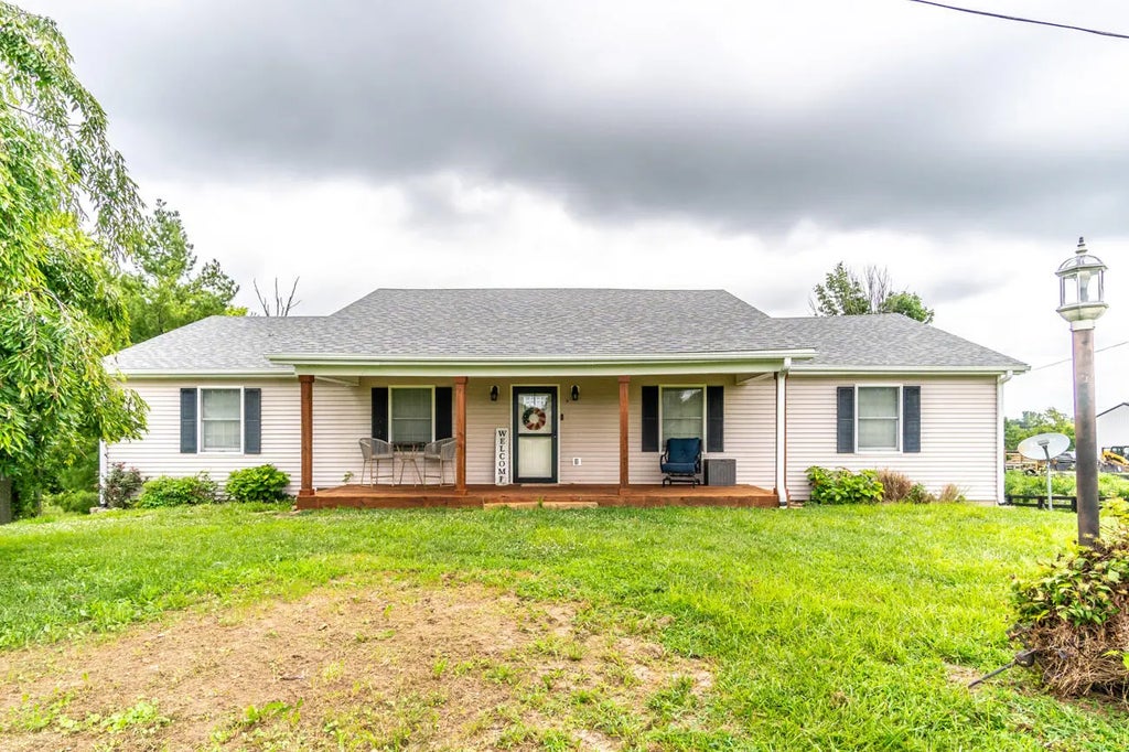 Motivated Sellers ! Lovely 3 bedroom, 2 bath Ranch home on 1.3 acres in a Great Location! With only a few miles from Bluegrass Parkway this home with beautiful views and many features could be yours. A front covered deck is a delightful first impression extending a warm invitation to guests and family The main floor foyer takes you to the Living and kitchen area which has an open floor layout with 16 foot vaulted, tongue & groove oak ceiling, kitchen island and a window world sliding door that leads out to your back deck for your enjoyment. Main floor also features a master bedroom with full bath and walk-in closet, 2nd bedroom has an oversized closet, 3rd bedroom and a full bath with laundry. Downstairs is a fully unfinished basement to make your own with a walk-out door as well as a 2 car garage Some updates include; Main floor flooring-2022, Water Heater-2023, Basement Windows-2023, Dishwasher-2024, Front Door and Screen door- 2025. 5 year old Heating and Air geothermal system and 5 year old Roof. There is an accepted offer with a kickout in place,