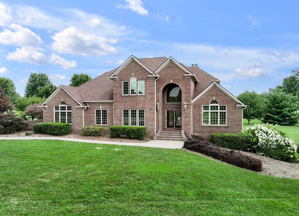 Nestled in the idyllic Wil Rose Estates of Versailles, KY, this exceptionally well-constructed home blends timeless elegance with high-end finishes and meticulous craftsmanship. Situated on 1.66 beautifully landscaped acres, the property offers privacy, space, and convenience—just minutes from Keeneland, Bluegrass Airport, and downtown Versailles. Inside, you'll find recently refinished American cherry hardwood floors, soaring ceilings, detailed crown molding, and exquisite woodworking throughout. The formal living and dining rooms are perfect for entertaining, while the kitchen—featuring Viking appliances, granite counters, and abundant cabinetry—opens to a spacious family room with fireplace for comfortable everyday living. The first-floor primary suite is a private retreat, with coffered ceilings, a luxurious bath, walk-in closet, and adjacent laundry. Upstairs are 3 additional bedrooms, 2 full baths, and a large family/play room complete with a built-in stage—ideal for performances or imaginative play. The walk-out lower level offers even more living space, including 2 bedrooms, 2 full baths, a rec room, theater room, and a second family room with fireplace and patio access!