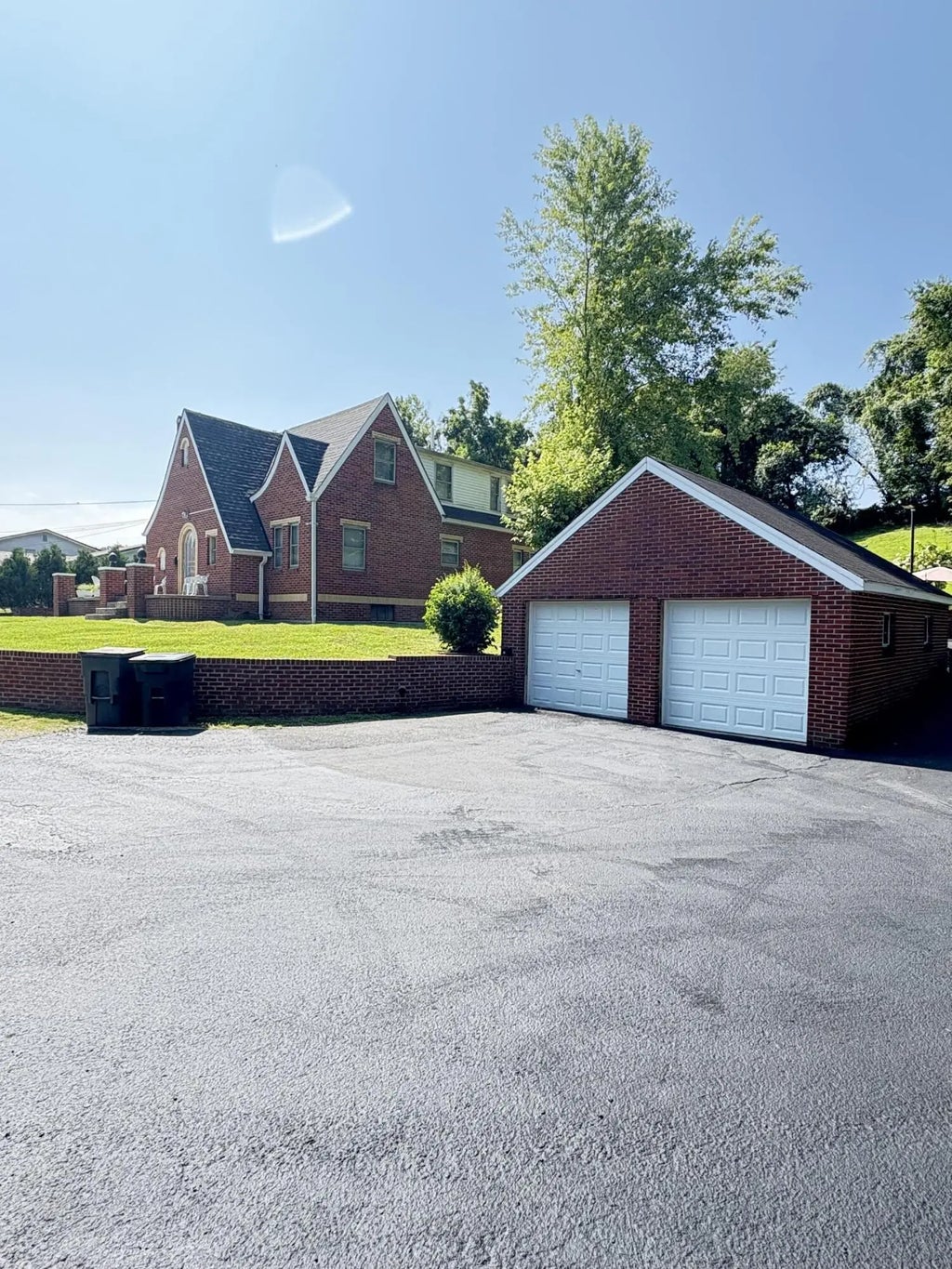This brick Tudor style home sits quietly at the end of House Avenue, in the city limits of Manchester. Adorned by beautiful landscaping and arched doorway, this home offers a traditional air of days gone by. The main floor boasts a large living area with a cozy fireplace and a spacious family room. An elegantly designed and updated eat-in kitchen with all the modern amenities is the cooks dream! A French door just off the family room leads to a space perfect for an office or perhaps even a sunroom. On this first floor, you'll also find 2 bedrooms, one full bath and an extra-large laundry area. Upstairs you'll find three other spacious bedrooms and a full bath. One of the bedrooms is currently used as a den. A full unfinished attic offers plenty of space for storage and could be easily converted to an additional room. A full, unfinished basement provides storage, safety and the option of additional living space. This home exudes charm with its mostly all original doors, arched doorways. and some existing hardwood flooring. A two-car detached garage sits just to the side front of the home with another large garage at the back side of the house, perfect for campers or boats.. Large front patio and covered side detached carport. An additional large building which is currently used as an antique and used furniture store is also included on the property. The building could serve a multitude of purposes, whether you're looking to start a small business of your own or just need a place to work on a hobby. Convenient to all the amenities town has to offer. One minute from Advent Health ,5 minutes from Manchester FCI and walking distance to the city park. Don't miss the opportunity to own such a rare find in Manchester!