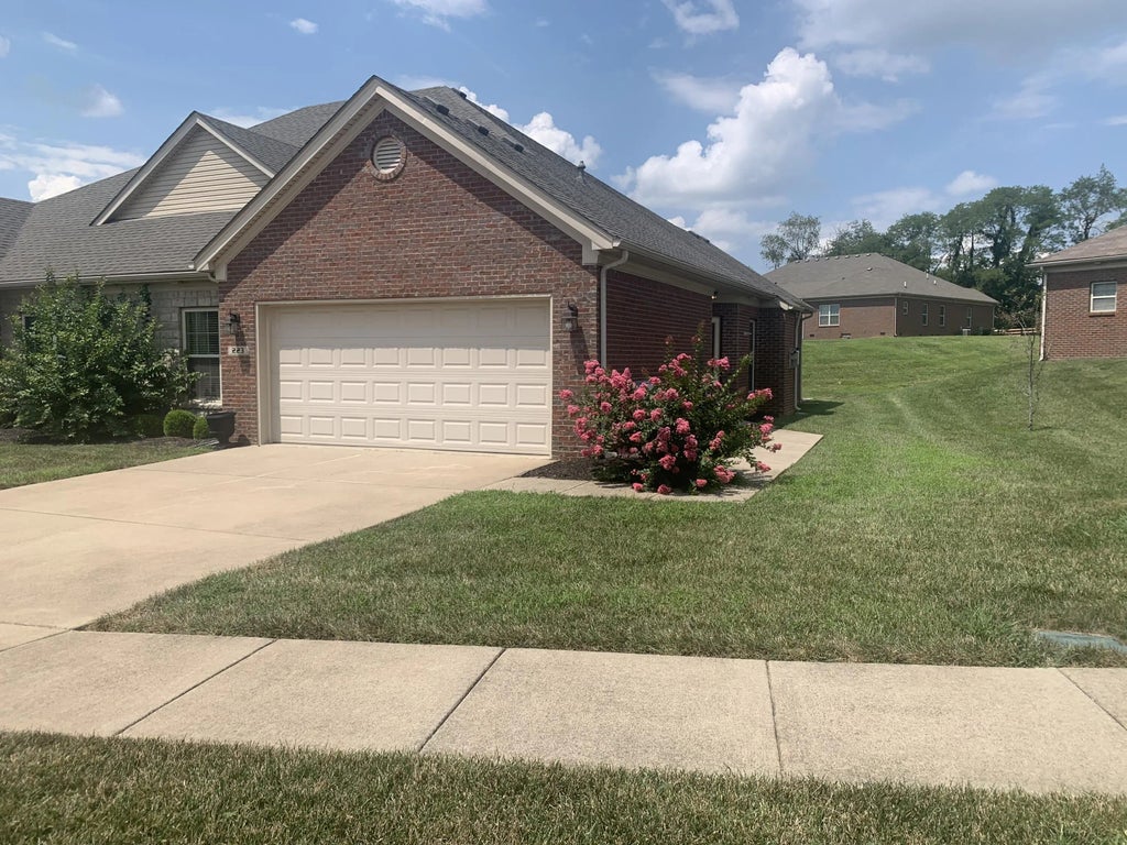 This well maintained patio home is conveniently located offering a great commute between Lexington and Louisville. The living room, with gas fireplace and entry closet, is open to the kitchen and dining area. Laminate flooring was installed in this area in 2022. The kitchen offers plenty of cabinets and counter space with a large breakfast bar. The stove, microwave, dishwasher and refrigerator will remain. The primary bedroom has a large bathroom with beautiful tiled shower, walk-in closet and large double vanity sink with full mirror. There is a second bedroom and another full bathroom. The laundry room has nice shelving and the washer and dryer may remain. This home offers a nice attached garage, driveway and extra parking close by. Call today to view this home!