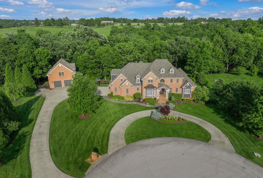 Welcome to 315 Whispering Brook Drive, this Jessamine county estate has it all! Offering 5 bedrooms, 5 bathrooms, 5 car garage, chef's kitchen, inground heated saltwater swimming pool, unfinished guest house, home theater and bar with nearly 7,000 square feet. Located on an immaculately maintained and private two acre cul-de-sac lot, you will be impressed by the curb appeal from the second you pull in to the circular drive. Step on to the front porch and in to the 2 story foyer. Flanking the foyer are the formal dining room and home office with French doors. The two story great room with built-ins and fireplace is a grand place to entertain. The chef's kitchen with breakfast room offers a gas range, three ovens and a massive island. The first floor primary suite features built-ins, a fireplace, dual closets, en suite bath with large shower and jetted tub, as well as a sitting room with turret ceiling. Upstairs you will find one guest room with en suite bath, three additional bedrooms and a full hall bath. The basement was designed with Wildcat fans in mind! You'll love the bar complete with wine refrigerator, keggerator, beverage fridge, ice machine, dishwasher and lots of storage.
