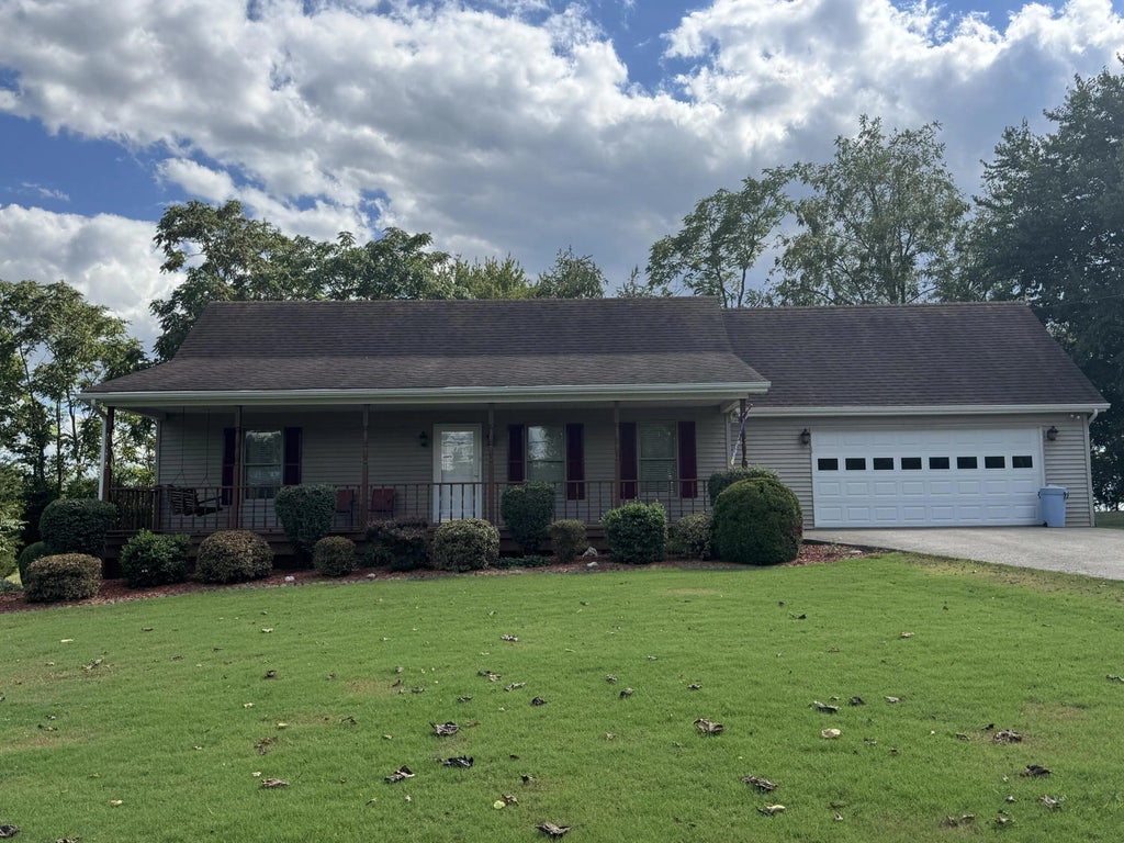 Welcome to this charming 3 bedroom, 2 bath home situated on a spacious 1 acre lot! This property offers a warm and inviting front porch, perfect for relaxing evenings or morning coffee. Inside, you'll find a functional layout with three comfortable bedrooms and two full bathrooms. The partially finished basement provides additional living space and lots of storage in the unfinished portion. The attached garage and concrete driveway add convenience and plenty of parking. Located in a peaceful setting, this home delivers comfort and charm both inside and out.