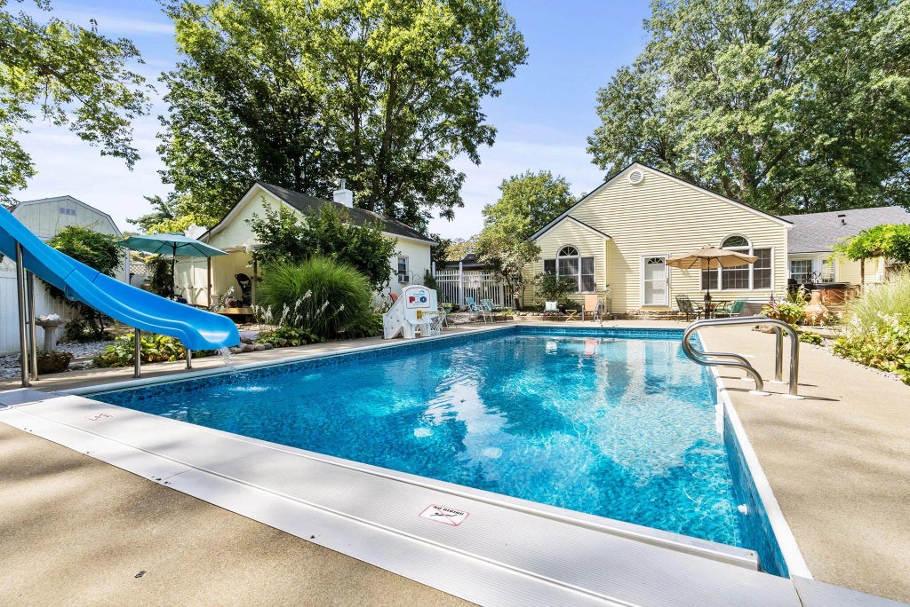 Bring everyone together in this spacious home with a fun and unusual floor plan! Inside, you will find plenty of room for family and friends to gather, complete with two fireplaces and wide open great room . Step outside to your own backyard retreat-an in-ground pool with gazebo , outdoor shower, and hot tub(hot tub does not convey)-perfect for summer cookouts or quiet evenings under the stars. Plus the guesthouse with a kitchenette and full bath makes a hosting overnight guests a breeze. This home offers endless space for entertaining, indoors and out, with the relaxing vibe you wil love coming home to. Buyer to verify square footage. Gas stove in third bedroom does not convey. Selling agent is related to Sellers