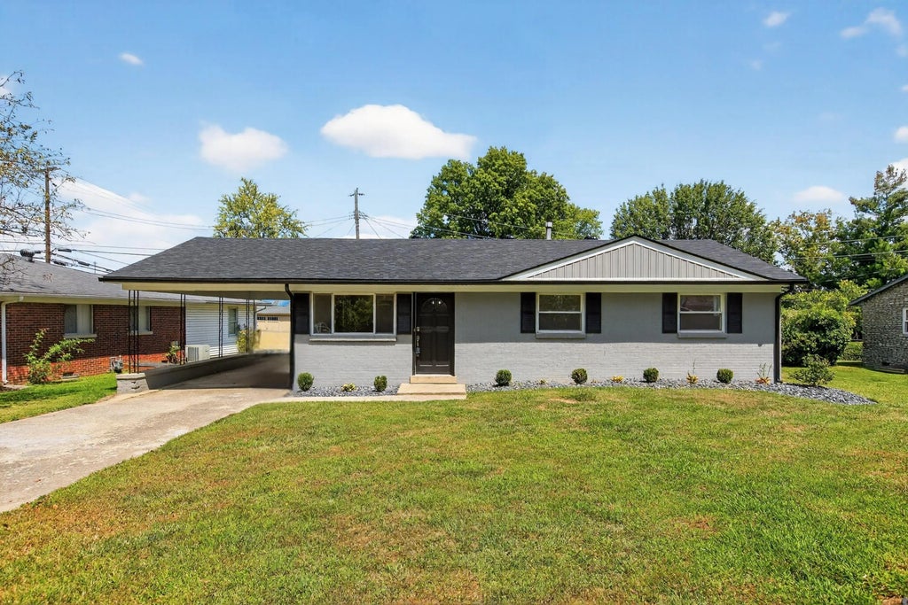 Welcome home to this beautifully remodeled 3 bedroom, 2 bathroom brick ranch in a well-established neighborhood. Nearly everything is new, including the roof, plumbing, and kitchen appliances. You'll love the refinished hardwood floors and stylish fixtures throughout. The kitchen features gorgeous granite countertops and an island with bar seating. One bathroom offers a tiled shower with a built-in niche, while the second bath includes a convenient stand-up shower. The primary bedroom has a large walk-in closet with custom shelving and drawers. The cozy den provides a second living area. Outside, enjoy the covered carport and good-sized back yard. Just steps from Legacy Grove Park with its walking trail, dog park, and playground, this home blends modern updates with timeless charm! Move-in ready and waiting for you!