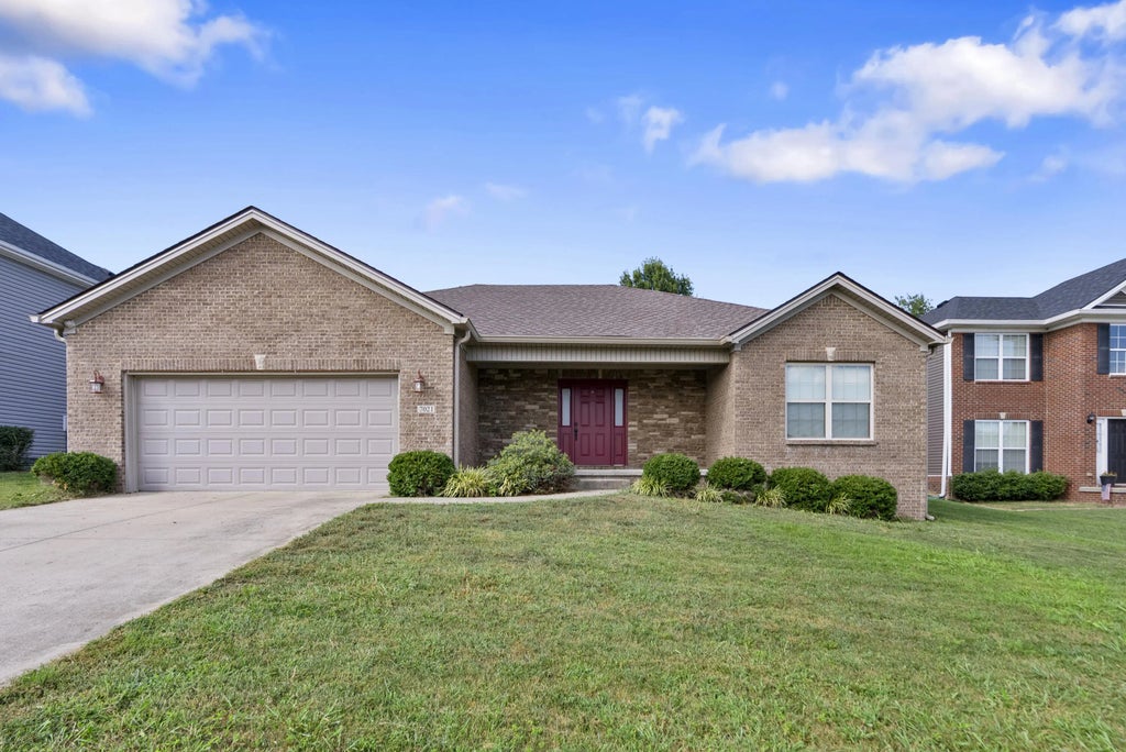 This cozy, single level ranch in Richmond is only 10 years old and has it all done for you! Centrally located off I-64, minutes from downtown Richmond and EKU, this 3 bed, 2 bath, 1,546 square foot gem in one of Richmond's favorite neighborhoods, Derby Chase, has a new roof, new siding, new windows, new gutters and brand new kitchen appliances (fridge and dishwasher) all within the last two years! The backyard is fully fenced as well and if not for a recent engagement, the seller wouldn't be moving! From the front porch, you'll enter the beautiful combo living room, kitchen, dining room space that anchors the home with the primary bedroom suite on the left side and two generous sized bedrooms on the right. The primary suite has a walk-in closet and shower within the en suite bathroom, while the other side is offset by the other full bathroom, in between two additional bedrooms, with oversized closets and another walk-in! The separate laundry room connects the main living area to the plus sized 2-car garage and the fully fenced back yard has a covered porch for your privacy and entertaining needs with a mostly flat lot that's 1/5 of an acre, and perfect for pets, kids, or any sort of outdoor activities you might like! Located in the back of a cul-de-sac in the Derby Chase subdivision, homes like this don't come for sale often so we'll be reviewing offers as they come in!