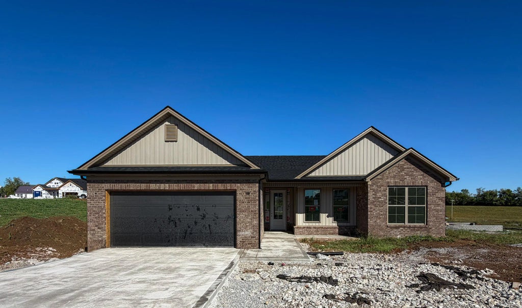 New construction nearing completion! Estimated 60 days to completion. Drywall phase. One story - ranch floor plan on a flat lot. Enter through entry foyer with coat closet in a large family room with 11 ft ceilings and fireplace will have wood beams on ceiling. Kitchen features island bar and dining area. Formal dining/flex room. Large primary suite with very large walk-in closet with tons of room for storage and private bathroom with tiled shower and 2 sink vanity. Two additional bedrooms with additional full bathroom. Carpet only in bedrooms LVP remaining areas. Covered rear patio in back. Broker/owner.