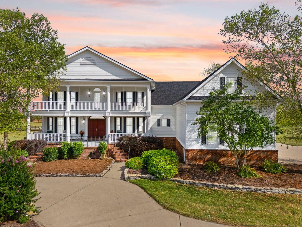Experience luxurious living in this stunning 2 story Southern Antebellum inspired custom built home. Meticulously crafted with attention to detail, it offers hardwood floors, 3 tier crown molding, surround sound and security by "Modern Systems" throughout and spacious 9' ceilings that create an open, airy feel. The home has 4 zone Heat and Air for your comfort. Bonus is the large dedicated finished storage room second level. Remote controlled propane gas fire logs in the Great room. Enjoy relaxing moments on the covered front porch, or the second level covered porch for a view of beautiful sunsets. The deck and porches are perfect for entertaining or simply unwinding. This house has an unfinished walk out basement providing a blank canvas to add more living and entertainment space. Or this space could allow generational living. This home combines elegance, comfort, and quality in every detail. This is an exceptional opportunity for refined living. Whether you're looking for a peaceful retreat or versatility property for farming, recreation, or perhaps some horses this incredible estate delivers it all. This can be your dream home in a breathtaking rural setting. Close to the Kentucky Horse Park, Lexington, Midway, Versailles or Frankfort, restaurants, shopping and more. Call today for an appointment to view this house.