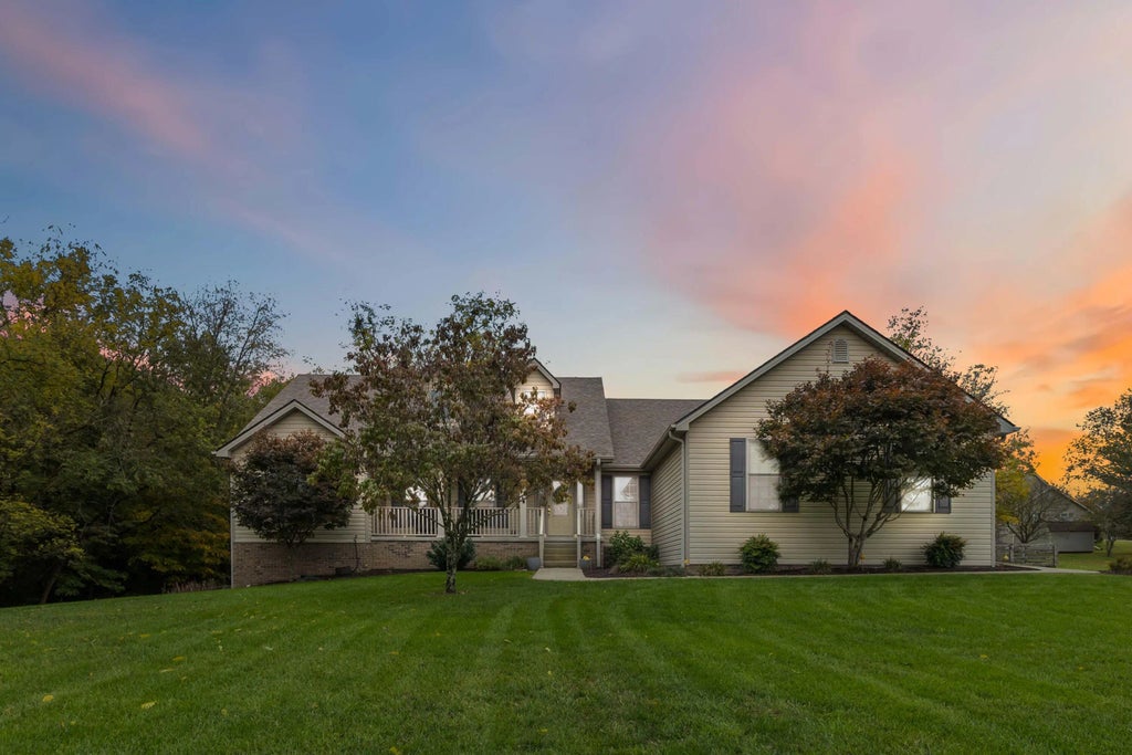Ever dreamed of living on Easy Street? Now is your time! Welcome to this beautiful Ranch on a Finished basement situated on 1.2 acres just across the street from the Lake yet backing to the Woods! Your first floor boasts gleaming hardwoods, vaulted ceilings, a spacious owner's suite and large kitchen with abundant cabinetry! The large living room features a gas log fireplace for Kentucky winter nights. The kitchen has a large island, built-in pantry, multiple dining areas and walks out to the covered back porch overlooking the backyard. The split bedroom floor plan makes for a great layout with 3 bedrooms upstairs. The first floor owner's suite features 2 walk-in closets, a soaking tub and more. There's also an office space and large laundry room on your main level. Downstairs, you will find a large den/rec room, a guest suite with full bath, a safe/shelter room and a Huge Auxiliary Garage for all your toys or workshop. Backing to a wooded area there's plenty of wildlife watching opportunities and this might just be one of the best lots in the neighborhood. Roof was replaced in 2022 and current owners have done a great job maintaining this home. Just 10 minutes to Danville and 30 mins from Lexington's south side Shopping with easy access to Herrington Lake! Schedule your private showing on Easy Street today!