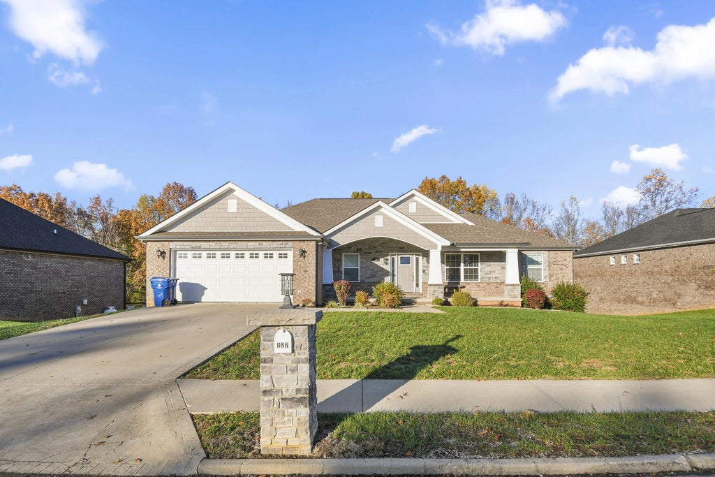 **Stunning Modern Oasis in the Heart of the Vue Development** Welcome to your dream home! Nestled in the highly sought-after Vue development, this exquisite 2021 Wiggington construction boasts unparalleled curb appeal and an abundance of modern charm. From the moment you step through the front door, you'll be captivated by the bright, open concept floor plan that elegantly blends style and functionality. As you enter, you're greeted by soaring vaulted beamed ceilings that create an airy atmosphere in the spacious great room, highlighted by a cozy fireplace—perfect for cozy gatherings or quiet evenings. The seamless flow from the great room to the dining area and gourmet kitchen makes entertaining a breeze. The kitchen is a chef's delight, featuring high-end finishes such as custom cabinetry, luxurious granite countertops, a chic tile backsplash, and top-of-the-line stainless steel appliances. Ample recessed lighting illuminates the space, enhancing the modern aesthetic and creating an inviting ambiance. Offering the ultimate in privacy, this home features a thoughtfully designed split bedroom plan. Two generously-sized bedrooms share a beautifully appointed full bath, while the stunning master suite serves as a tranquil retreat. The master bath is a spa-like haven with dual vanities, providing plenty of space for your morning routine, and a spacious walk-in closet that offers ample storage for all your wardrobe needs. Conveniently located adjacent to the master suite, the well-equipped laundry room adds to the practicality of this exceptional home. Venture downstairs to discover the finished basement, a versatile space that can be tailored to your lifestyle. Whether you envision a family game room, home theater, or a vibrant recreation area, this vast family/recreation room will not disappoint. Additionally, the spacious basement bedroom with its own walk-in closet and full bath provides a perfect guest suite or private retreat for older children. The utility garage offers extra space for storage or workshop needs, and the convenient walk-out leads directly to a charming patio surrounded by a lush, beautifully landscaped lawn. Imagine sipping your morning coffee on the lovely front porch, basking in the tranquility of your surroundings, or hosting summer barbecues on the expansive deck or patio, complete with a cozy firepit for cool evenings. This home is not just a place to live; it's a lifestyle—one that promotes relaxation, entertainment, and cherished memories. Don't miss your chance to own this show-stopping property in an unbeatable location. Schedule your private tour today and discover how this stunning home can elevate your living experience. Your perfect sanctuary awaits!