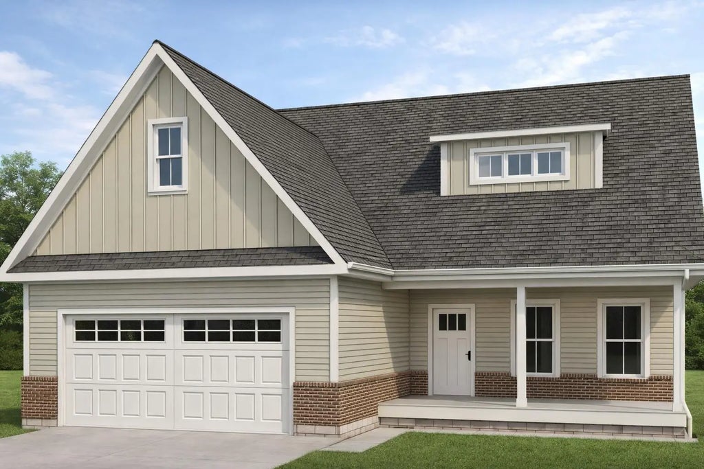 Discover your ideal living space in this stunning new construction 4-bedroom home, perfectly positioned in one of the most desirable locations in the neighborhood. This is one of the few homes that backs up to peaceful trees and farmland while also offering serene pond views—an exceptional combination of privacy and scenery. The exterior features a classic brick skirt paired with warm tan siding, a covered front porch, and a spacious covered deck overlooking the pond—ideal for relaxing or entertaining. A 2-car garage and a manageable yard provide everyday convenience with easy upkeep. Step inside to a bright, open living room highlighted by soaring 10-foot ceilings and expansive windows that fill the space with natural light. The house features large 8 foot tall interior and exterior doors throughout! The kitchen is both stylish and functional, showcasing white shaker-style cabinetry, upgraded quartz countertops, and brand-new stainless steel appliances. The thoughtfully designed floor plan places the primary suite on the main level, offering comfort and convenience. The spacious primary bedroom includes a large walk-in closet and a luxurious en-suite bathroom featuring a tile shower, freestanding soaking tub, and double-bowl vanity. Also on the first floor are a half bath for guests and a dedicated laundry room. Upstairs, you'll find three generously sized bedrooms that share a beautifully appointed full bathroom with a tiled tub surround and double-bowl vanity. Don't miss your opportunity to make this beautiful new home your own. The photo shown is a rendering, and there is still time to select certain finishes and personalize the home to your taste. Contact us today for more information or to schedule a private tour!