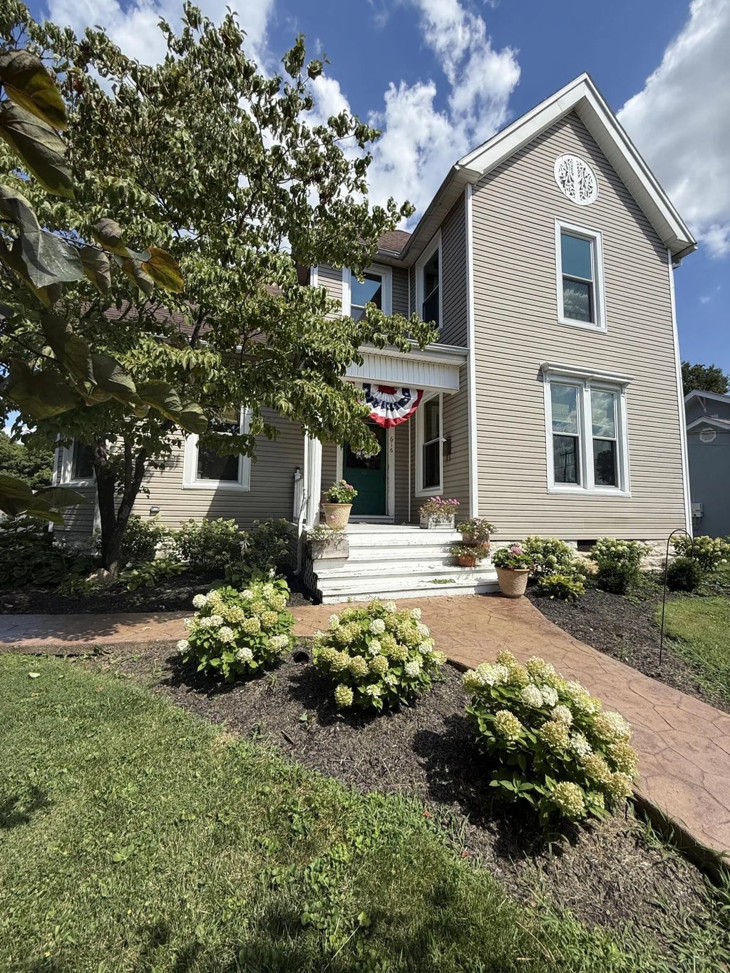Step into timeless elegance with this beautifully maintained historic home, offering the perfect blend of classic charm and modern updates. Situated on a large, lushly landscaped yard with mature trees, this property provides a private retreat just steps from the conveniences of downtown. Inside, you'll find soaring ceilings and generously sized rooms filled with natural light streaming through brand-new windows. Original hardwood floors showcase the home's craftsmanship, while updated lighting fixtures add a touch of contemporary style. The renovated kitchen offers modern functionality while honoring the home's heritage, making it ideal for cooking and entertaining. In the backyard, a spacious deck provides both privacy and ample room for hosting gatherings, from casual cookouts to evening get-togethers under the stars. Surrounded by mature landscaping, it's the perfect spot to relax and unwind. With its competitive price, this is a rare opportunity to own a piece of history with today's comforts.