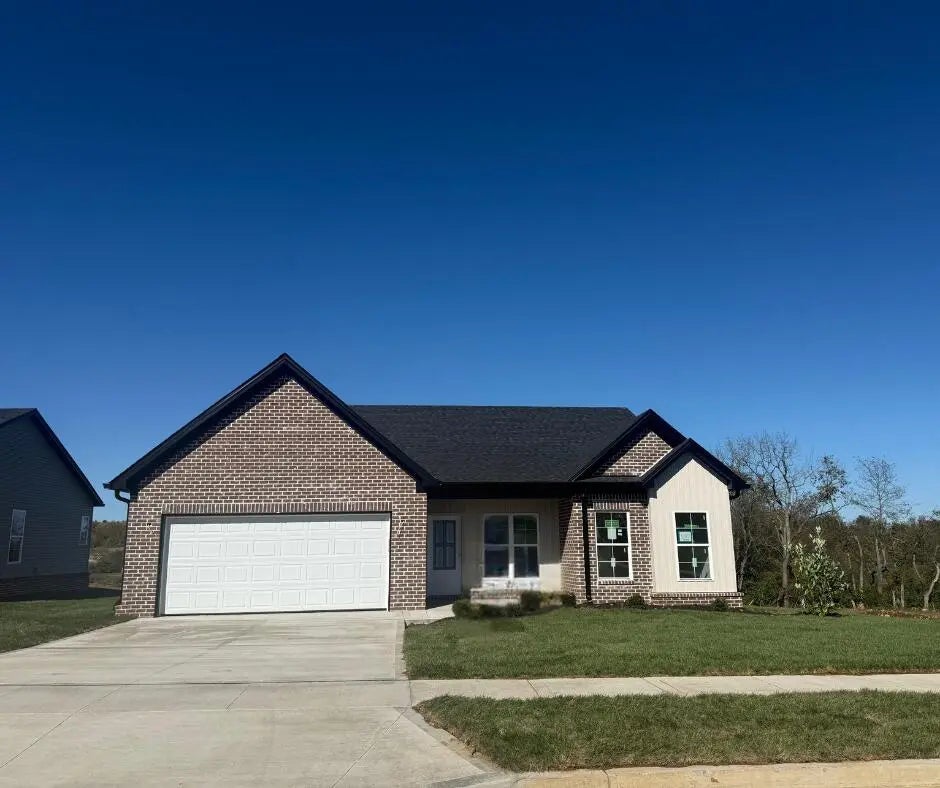 Beautifully built, single-level ranch-style home offering the benefits of new construction without the wait! A charming entry welcomes you with luxury vinyl plank flooring that flows seamlessly into the spacious open-concept kitchen and dining area. The kitchen is thoughtfully designed with 42-inch painted cabinetry, elegant crown molding, tile backsplash, quartz countertops, soft-close doors and drawers, a built-in microwave, smooth-surface stainless steel range, and stainless steel dishwasher. The large open living area overlooks the rear yard, creating a bright and inviting space for relaxing or entertaining. The owner's suite features an extra-large walk-in closet and a private bath complete with dual sinks, a linen cabinet, and a beautifully tiled shower. Additional bedrooms offer generous closet space, with one bedroom providing direct access to a full bathroom, perfect for guests or flexible living arrangements. Enjoy the spacious rear outdoor area with a fully sodded and professionally landscaped yard. The insulated garage doors and garage walls add comfort and efficiency, and the home is complete with a garage door opener and remotes. Experience the advantages of brand-new construction without the delay since this home is move-in ready and waiting for its new owners. Call today to learn more about special builder financing opportunities!